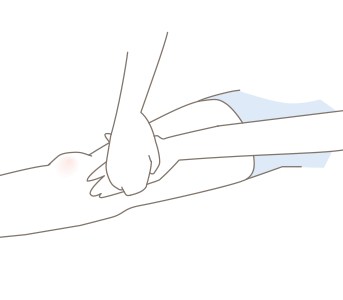 手を軽くグーにして、4指で肘から腕の付け根に向かって流す