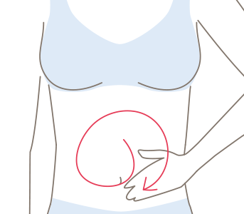 お腹(ウエスト)全体に「の」の字を描くようにし、腸を刺激する